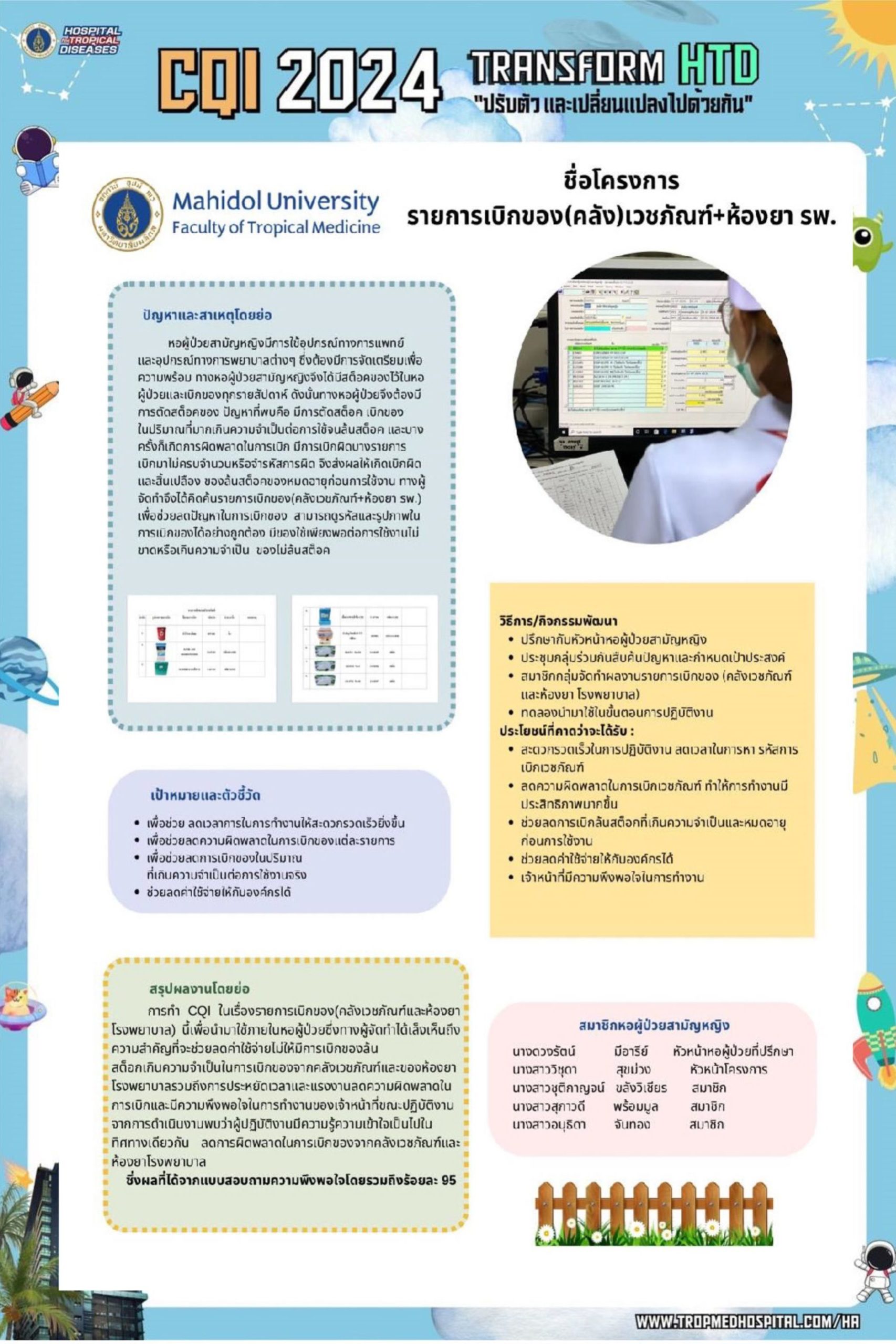 - กำหนดการจัดงานมหกรรมคุณภาพโรงพยาบาลเวชศาสตร์เขตร้อน ประจำปี 2567 คลิก