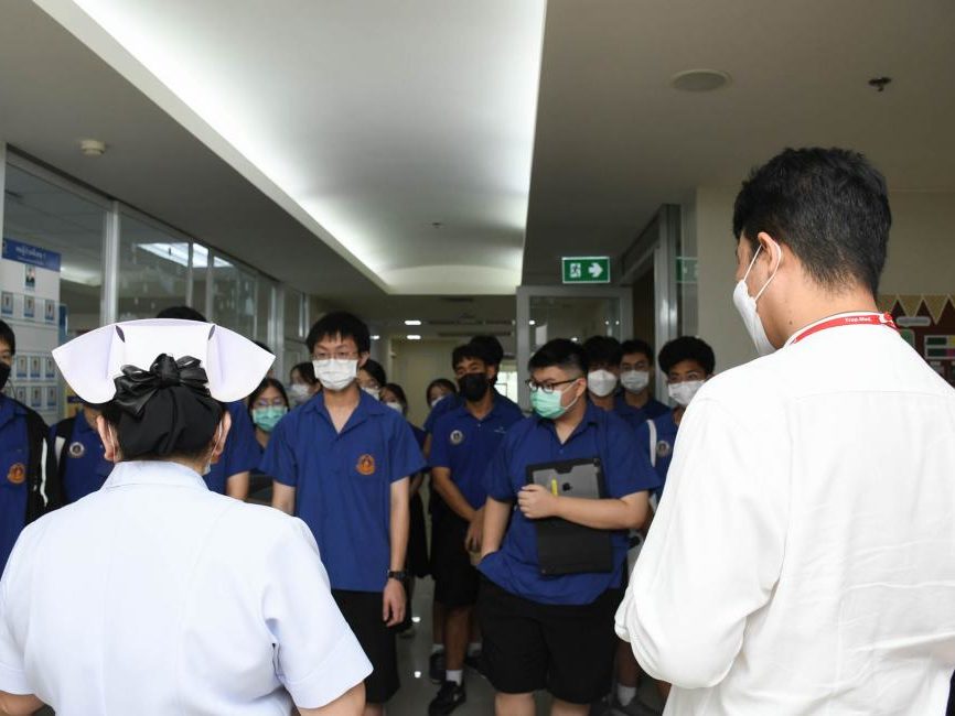 – วันที่ 9 มีนาคม 2566 รศ.นพ.วีระพงษ์ ภูมิรัตนประพิณ คณบดีคณะเวชศาสตร์เขตร้อน มหาวิทยาลัยมหิดล กล่าวต้อนรับ พร้อมด้วย ผศ.ดร.พญ.วิรงค์รอง เจียรกุล รองคณบดีฝ่ายการศึกษาและพัฒนาคุณภาพ และ ผศ.ดร.นพ.สัณฑ์ ม่วงน้อยเจริญ รองผู้อำนวยการโรงพยาบาลเวชศาสตร์เขตร้อน ร่วมให้การต้อนรับ พร้อมทั้งบรรยายกิจกรรมและผลงานคณะเวชศาสตร์เขตร้อน แด่คณะผู้ปกครองและนักเรียนชั้นมัธยมศึกษาปีที่ 5 โรงเรียนมหิดลวิทยานุสรณ์ เนื่องในโอกาสที่มาศึกษาดูงานคณะเวชศาสตร์เขตร้อน เพื่อให้นักเรียนมีโอกาสได้ศึกษาเรียนรู้จากประสบการณ์ตรง ณ สถานที่ต่าง ๆ นอกเหนือการจัดการเรียนการสอนในชั้นเรียน อีกทั้งยังเป็นส่วนประกอบการตัดสินใจเลือกศึกษาต่อและอาชีพที่ตนเองถนัด โดยมี ผู้ช่วยศาสตราจารย์ ดร. นายแพทย์สัณฑ์ ม่วงน้อยเจริญ รองผู้อำนวยการโรงพยาบาลเวชศาสตร์เขตร้อน นำเยี่ยมชมการให้บริการต่าง ๆ ในโรงพยาบาลเวชศาสตร์เขตร้อน