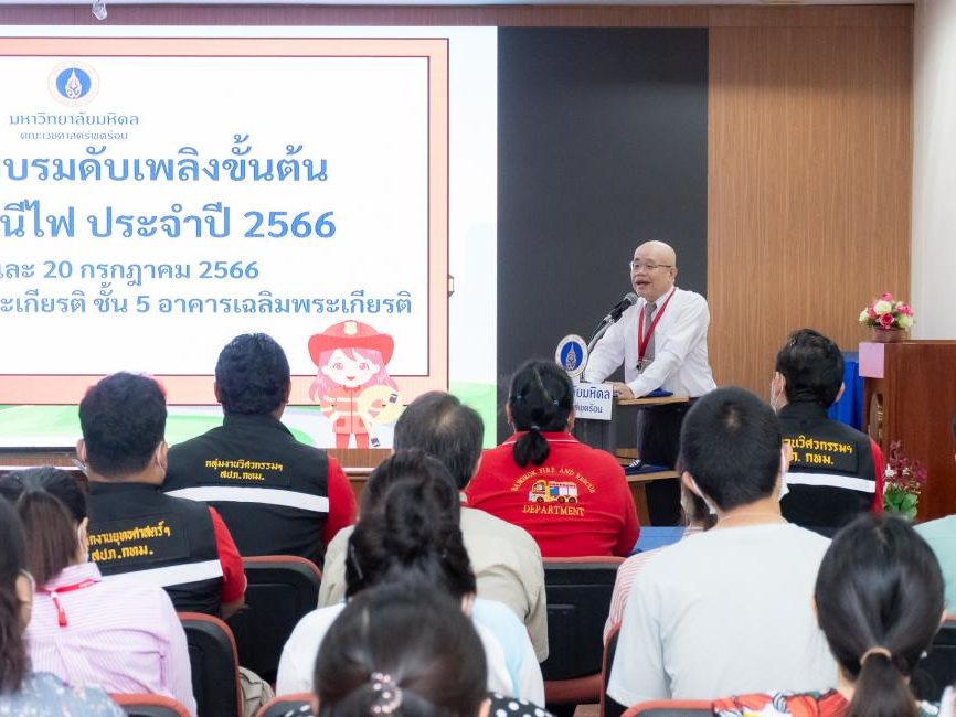 – วันที่ 19 กรกฎาคม 2566 รศ.ดร.ไกรชาติ ตันตระการอาภา รองคณบดีฝ่ายทรัพยากรกายภาพและสิ่งแวดล้อม เป็นประธานเปิดโครงการฝึกอบรมดับเพลิงเบื้องต้นและการอพยพหนีไฟ ปี 2566 จัดขึ้นเพื่อให้บุคลากรใหม่และบุคลากรที่ยังไม่เคยผ่านการอบรมมีความรู้ความเข้าใจเรื่องการดับเพลิงเบื้องต้น และมีทักษะในการอพยพในการเคลื่อนย้ายและช่วยชีวิต โดยมีการสอนภาคทฤษฎีและภาคปฏิบัติ การอบรมได้รับความอนุเคราะห์จากสำนักยุทธศาสตร์การป้องกันสาธารณภัยกรุงเทพฯ โดย นายแปร บุญศรีโรจน์ เจ้าพนักงานป้องกันภัยและบรรเทาสาธารณภัยชำนาญการ ให้เกียรติเป็นวิทยากร ณ ห้องประชุมเฉลิมพระเกียรติ ชั้น 5 อาคารเฉลิมพระเกียรติ คณะเวชศาสตร์เขตร้อน มหาวิทยาลัยมหิดล