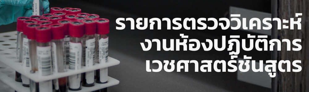 | LAB ที่ตรวจ | ข้อบ่งชี้/ประโยชน์ของการตรวจ | ราคา (บาท) | ชนิดตัวอย่างที่ใช้ส่งตรวจ | การเก็บ/ส่งตัวอย่าง | ระยะเวลาในการตรวจ | หมายเหตุ |