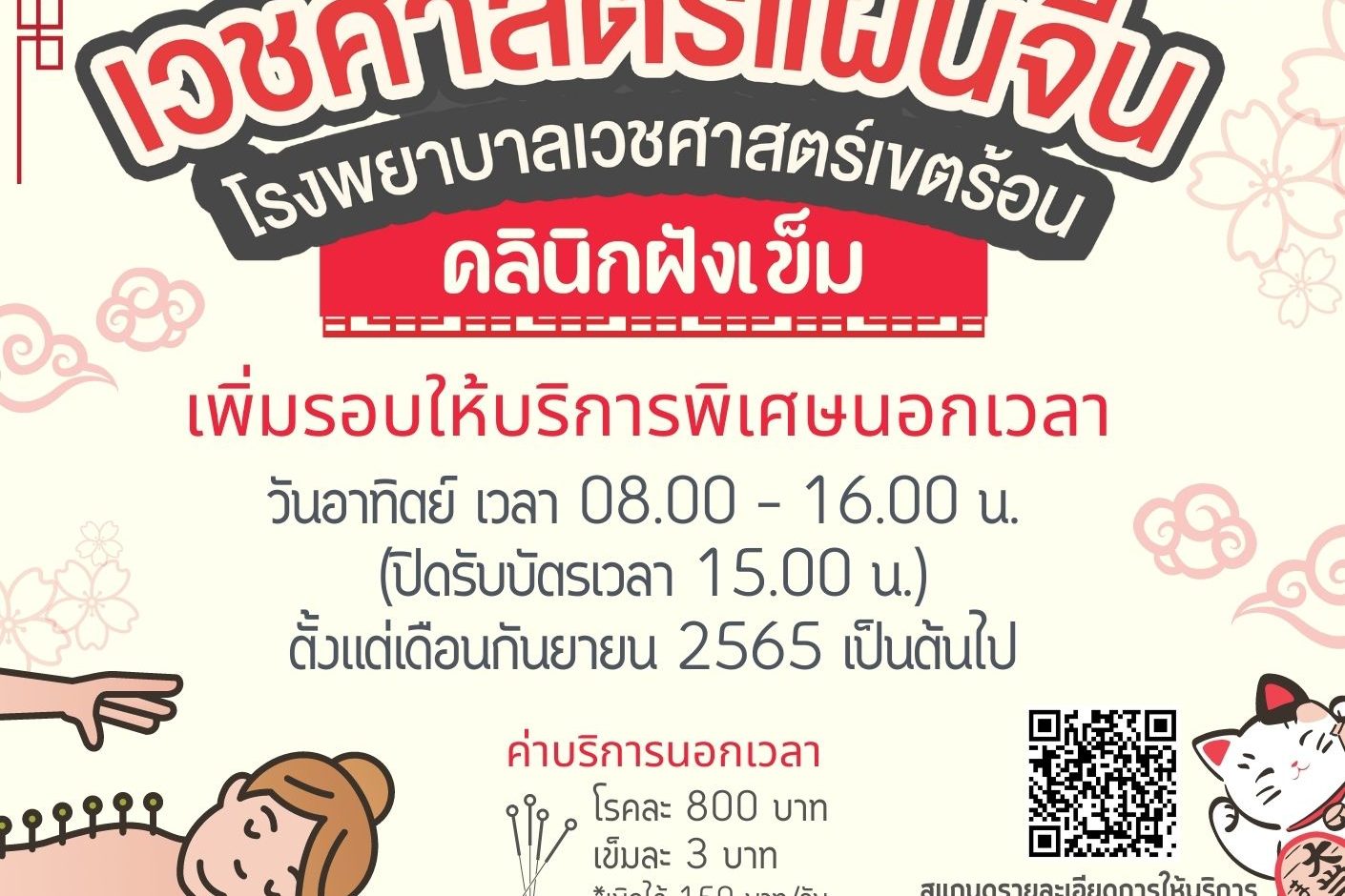 คลินิกฝังเข็ม เปิดให้บริการคลินิกพิเศษในวันอาทิตย์ ตั้งแต่ กันยายน 2565 เป็นต้นไป