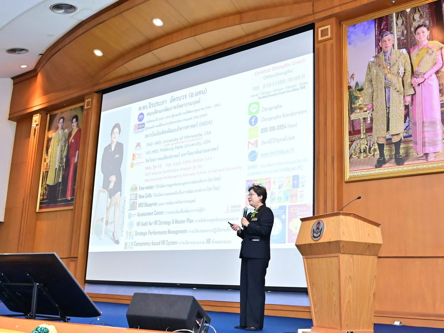 • การบรรยายหัวข้อ “ทรัพยากรมนุษย์” โดย ศ.ดร.จิรประภา อัครบวร (คณบดีคณะพัฒนาทรัพยากรมนุษย์ สถาบันบัณฑิตพัฒนบริหารศาสตร์)